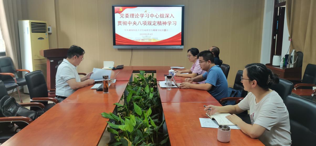 84午,党委理论学习中心组在生物楼110会议室举行集体学习,院党委书记龙赢主持学习,学院党委委员、领导班子成员参加。