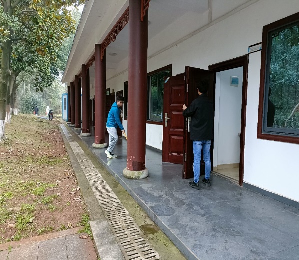 志愿者清理时,正好碰到了来参观的老师,老师们也热情地参与到了我们的清理活动中。王海华院长,舒艳书记,邓森文老师等和我们志愿者们辛勤打扫一个多小时终于将前门大棚清理干净。