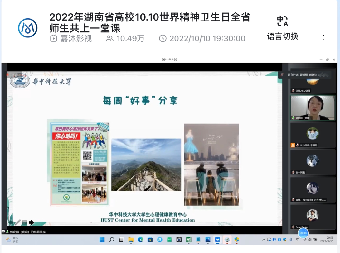 10月10日是世界精神卫生日,为让同学们更多地了解心理健康知识,促进学生心理健康发展,yl23411永利集团官网组织观看了世界精神卫生日主题讲座。