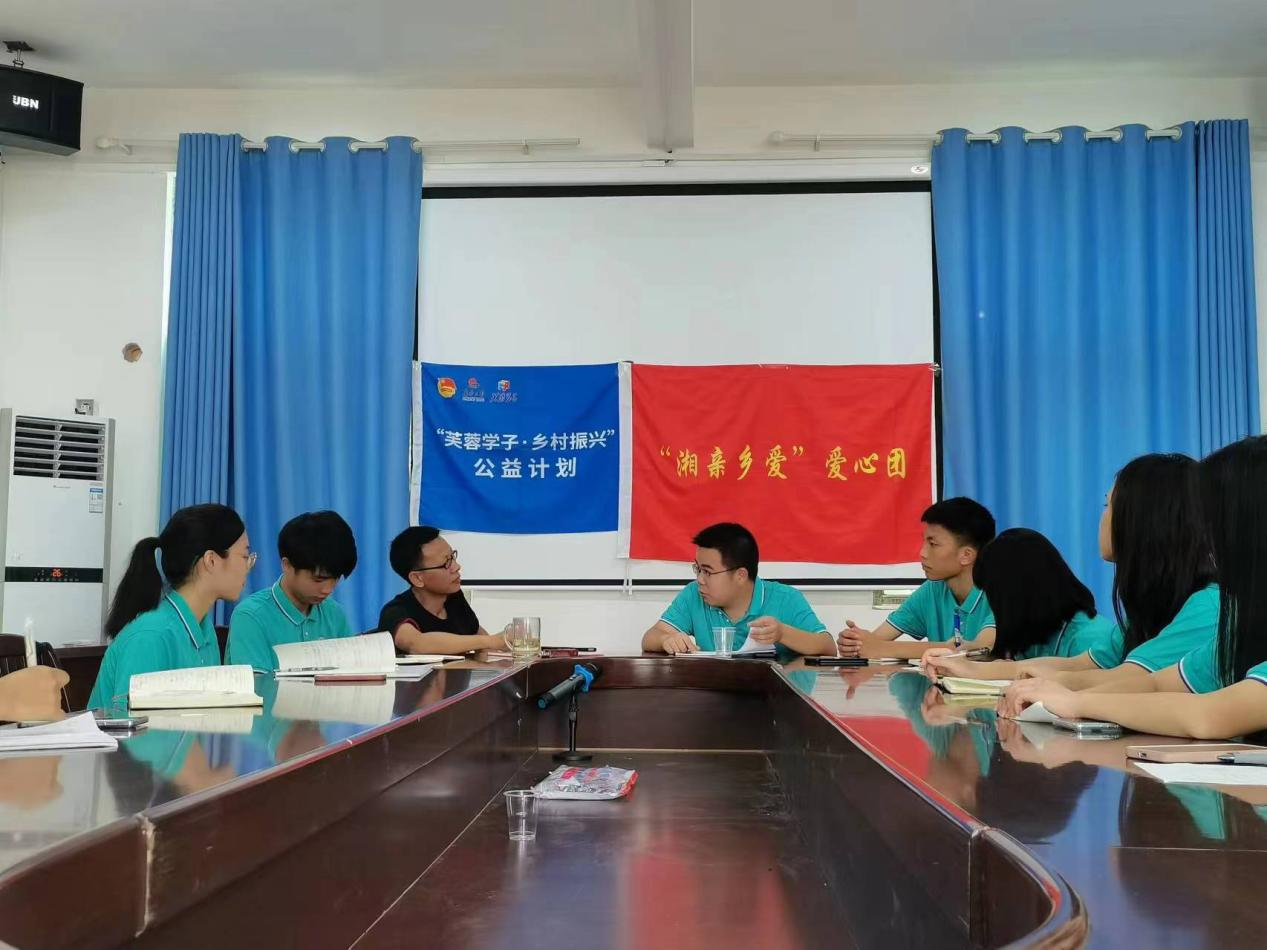 活动项目立项期间,爱心团多次开展研讨组织会议。在会议上,yl23411永利集团官网党委副书记舒艳和副院长周定港为爱心团提出要着重培养留守儿童的素质教育以及重视弱势群体居家安全问题等建设性指导意见,并希望爱心团以此活动为契机,结合湖南科技大学“三下乡”活动一齐发力,并相应开展大学生资助政策的宣传,帮助弱势群体中的学生及时了解国家的助学政策。