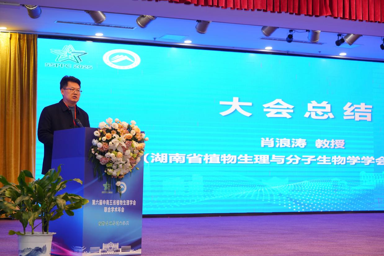 闭幕式最后,下一届会议承办方长江大学副校长许锋教授进行了“第七届中南五省植物生理学会联合学术年会(5SPPC 2026)”的预告。肖浪涛教授与蔡强教授分别代表湖南省植物生理与分子生物学学会和湖北省植物生理与分子生物学学会完成了5SPPC会旗的交接仪式。