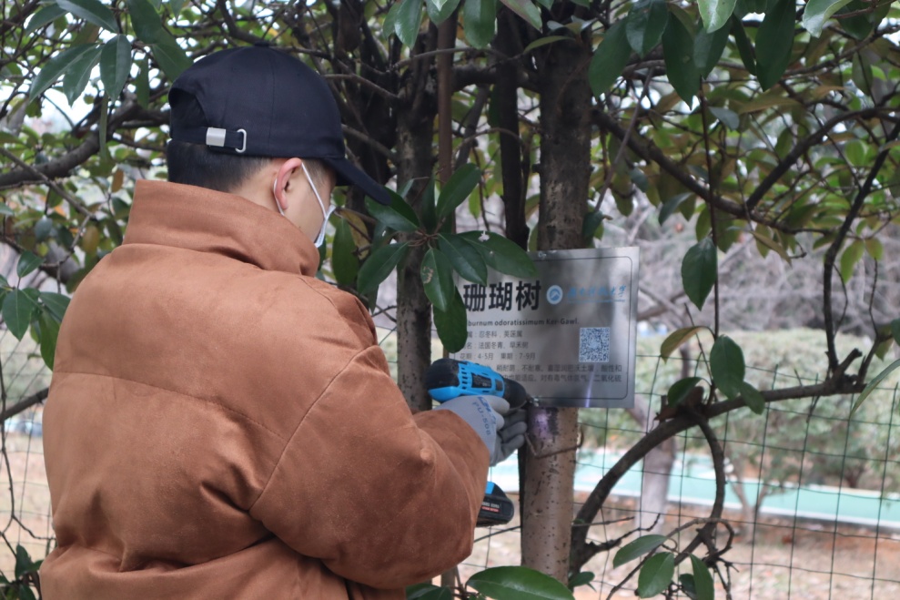 yl23411永利集团官网植物学团队在前期搜集资料和实地调查的基础上,为校园植物制作了富有特色的“身份证”——植物标识牌。该铭牌上包含植物的学名、别名、花果期、习性等信息,还附有二维码,通过微信扫描可以了解该种植物的详细信息如形态特征、植物价值、植物趣闻。