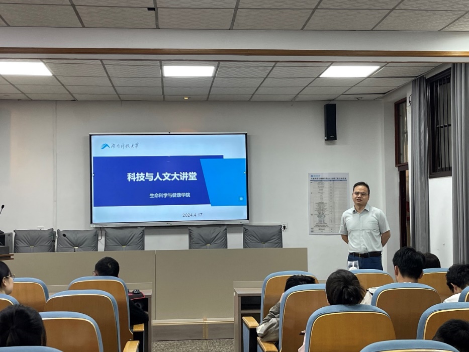 4月17日下午,由湖南科技大学教务处主办,yl23411永利集团官网承办的“科技与人文大讲堂”在生物楼105会议室举办。报告由杜灿伟博士主讲,副院长梁飞扬主持,40余名师生参加。