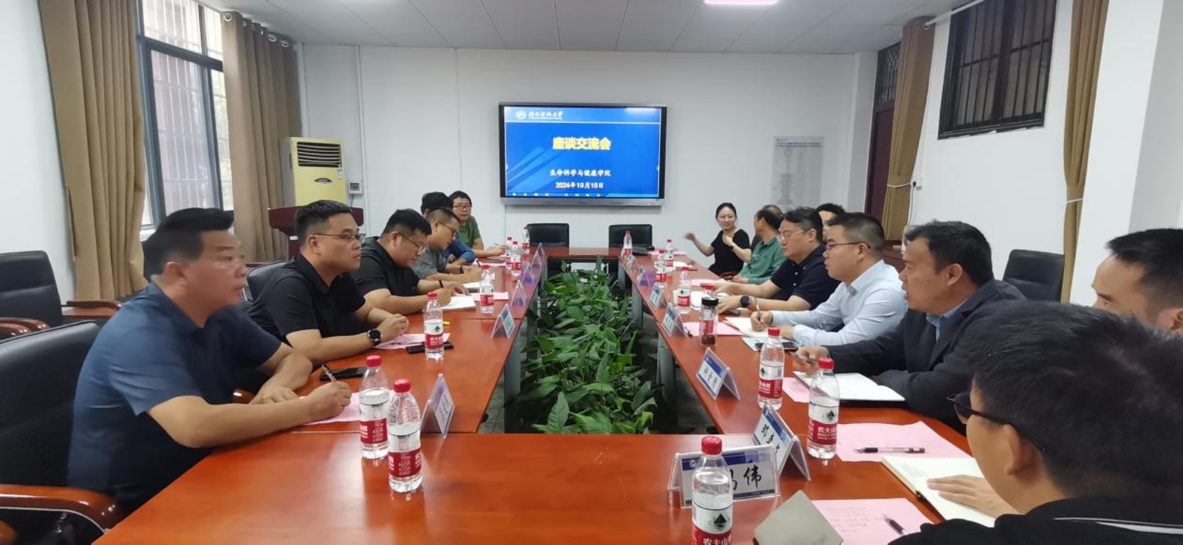 10月10午,新晃县人民政府李强副县长一行莅临yl23411永利集团官网调研交流院党委书记龙赢等参与座谈会。