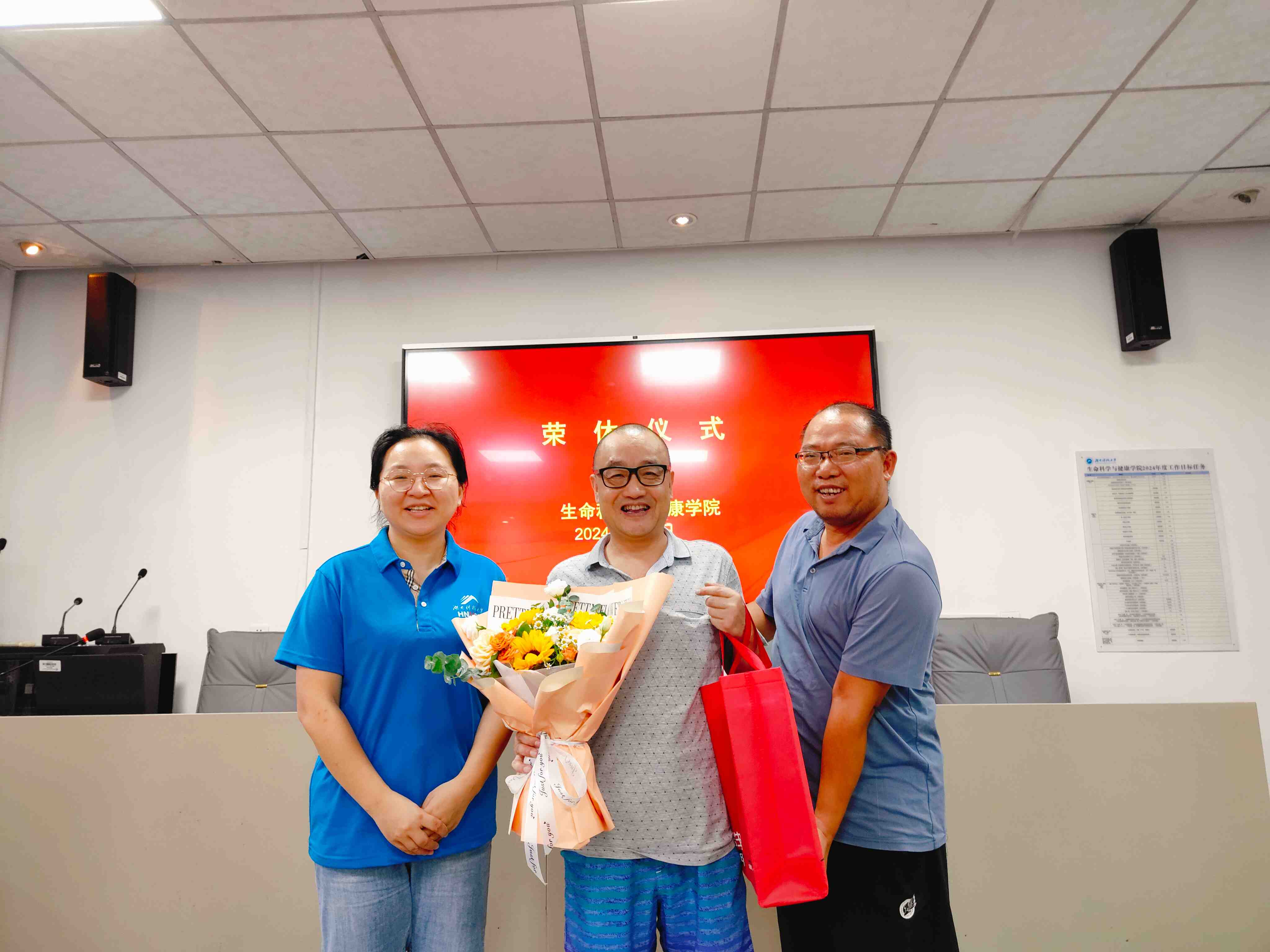 在荣休仪式上,学院教职员工欢聚一堂,共同回顾了他在教育战线上的光辉历程。院领导对康老师的辛勤付出和卓越贡献给予了高度评价,并为康健老师敬献了鲜花和礼物,祝愿他退休生活幸福美满、健康长寿。